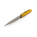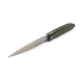 The Küchenschnibbler features a special inverse detent locking mechanism. The blade clicks into place inside a mechanism in the handle and operates similarly to a slipjoint knife. The knife features an elegant handle with a lanyard hole at the end. All models come with a black G10 backspacer, and stainless steel liners.